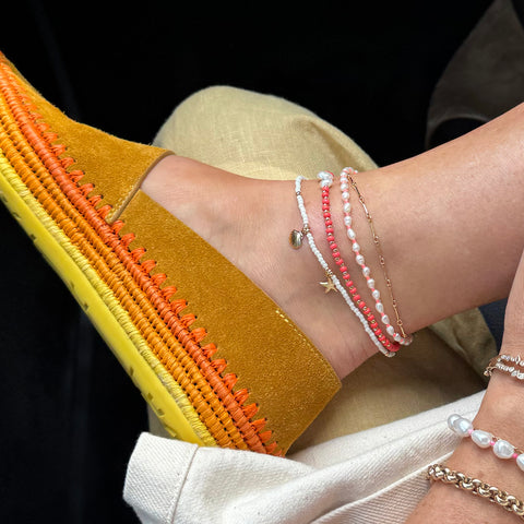 Add a touch of sparkle with the Jules Anklet, a dainty and flirtatious anklet that is perfect for any occasion. Featuring a delicate gold chain, 14k gold filled beads, and a luminous pearl, this anklet brings effortless elegance and a hint of playfulness to your look.