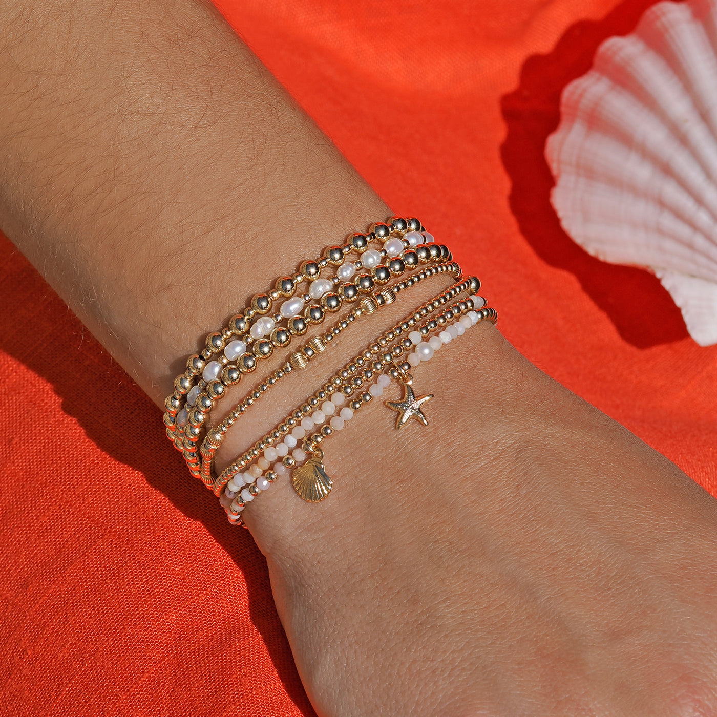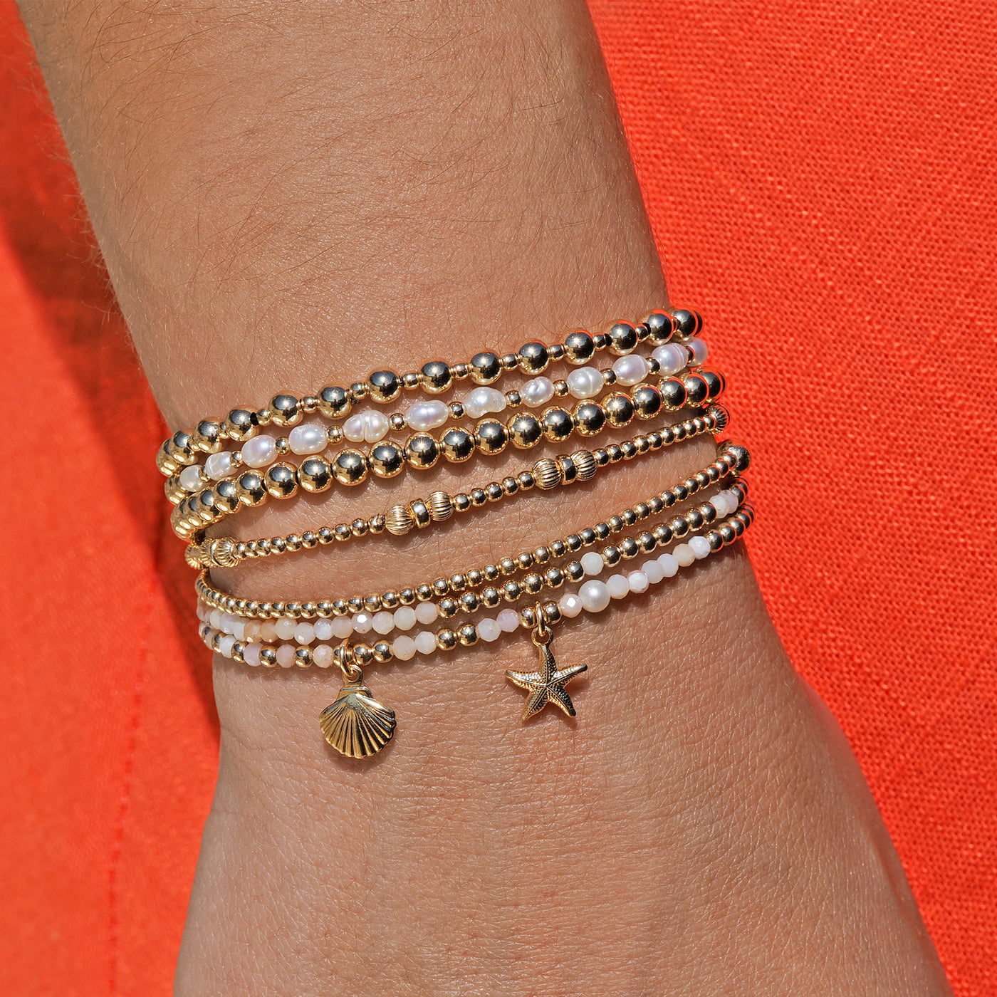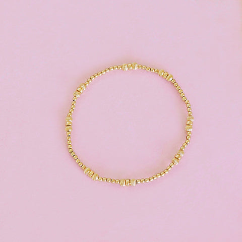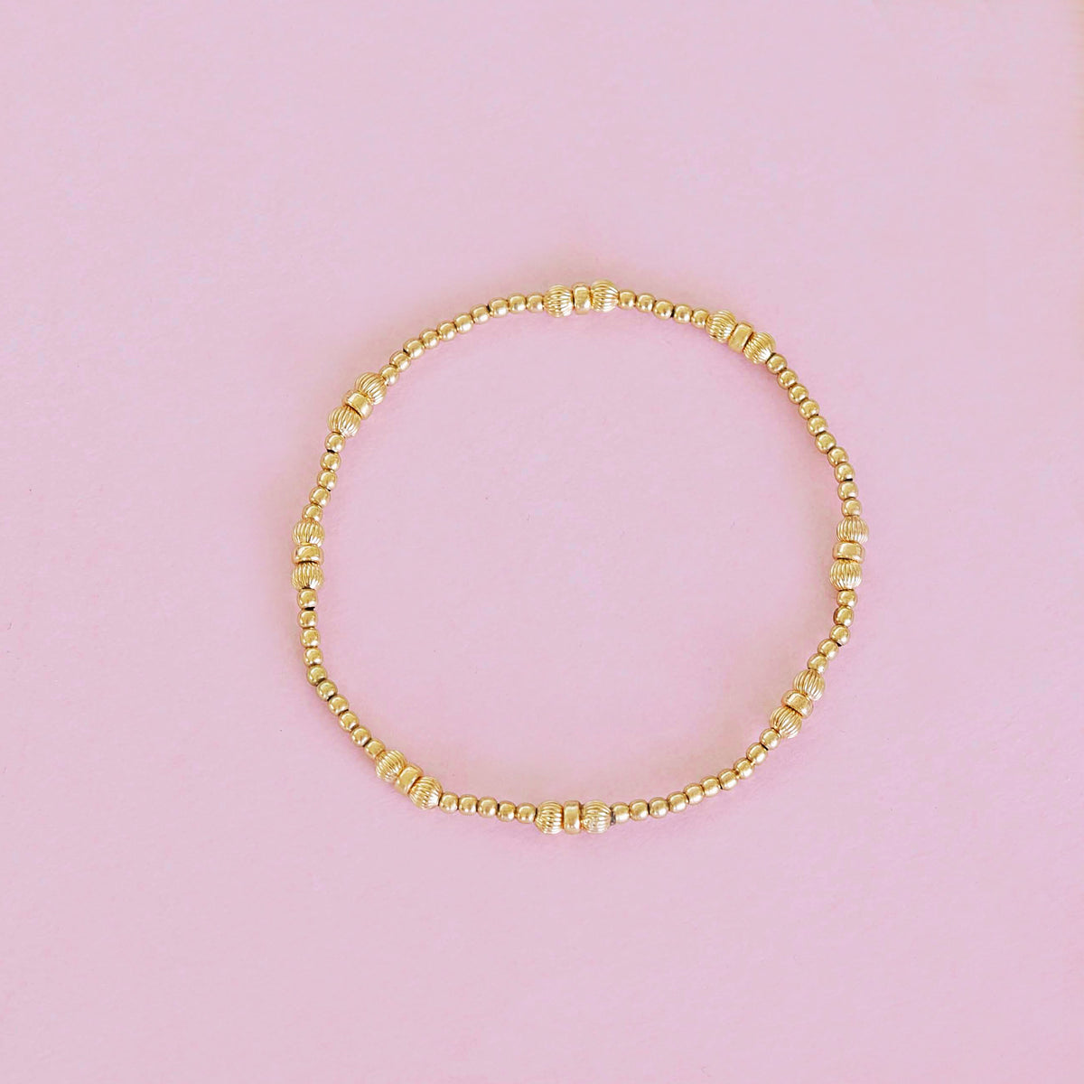 Elegant and effortless, the Gemma Bracelet features intricate 14k gold filled beading that catches the light with every move. Designed for stacking and made to last, it’s waterproof, timeless, and adds a touch of golden polish to your everyday style.