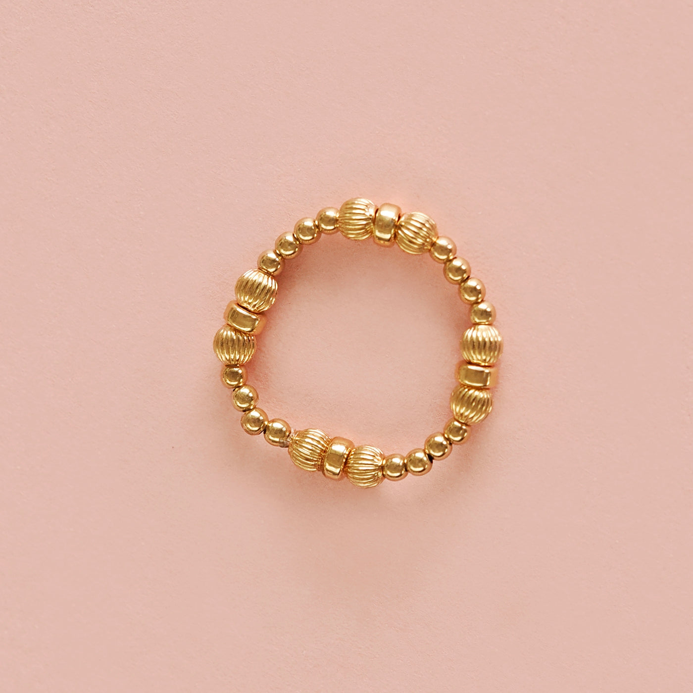 Elegant and effortless, the Gemma Ring features intricate 14k gold filled beading that catches the light with every move. Designed for stacking and made to last, it’s waterproof, timeless, and adds a touch of golden polish to your everyday style.