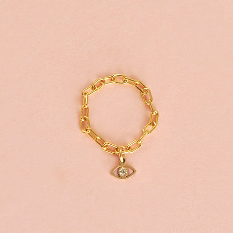 Protective and playful. The Amulet Link Ring features a delicate paperclip chain with a dainty evil eye charm - a symbol of luck and protection. 14k gold-filled and handcrafted to last, it’s a unique everyday piece that layers effortlessly and adds a touch of meaning to your style.